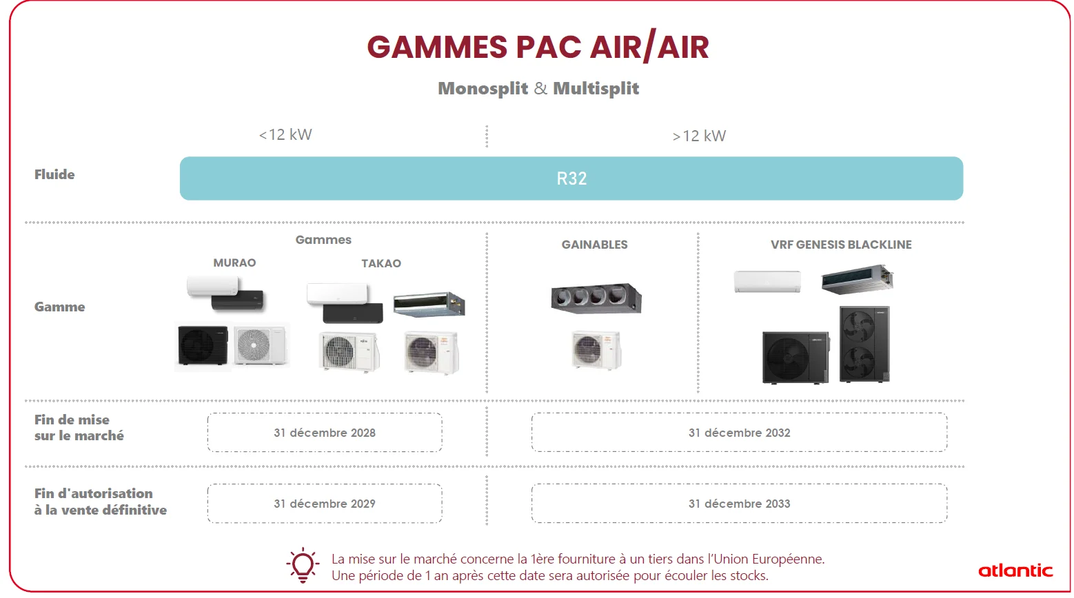 • Promotion des alternatives plus respectueuses de l’environnement : volonté d’interdire certaines technologies. Le gaz réfrigérant R32 se substituent peu à peu au R410a et R134a.
