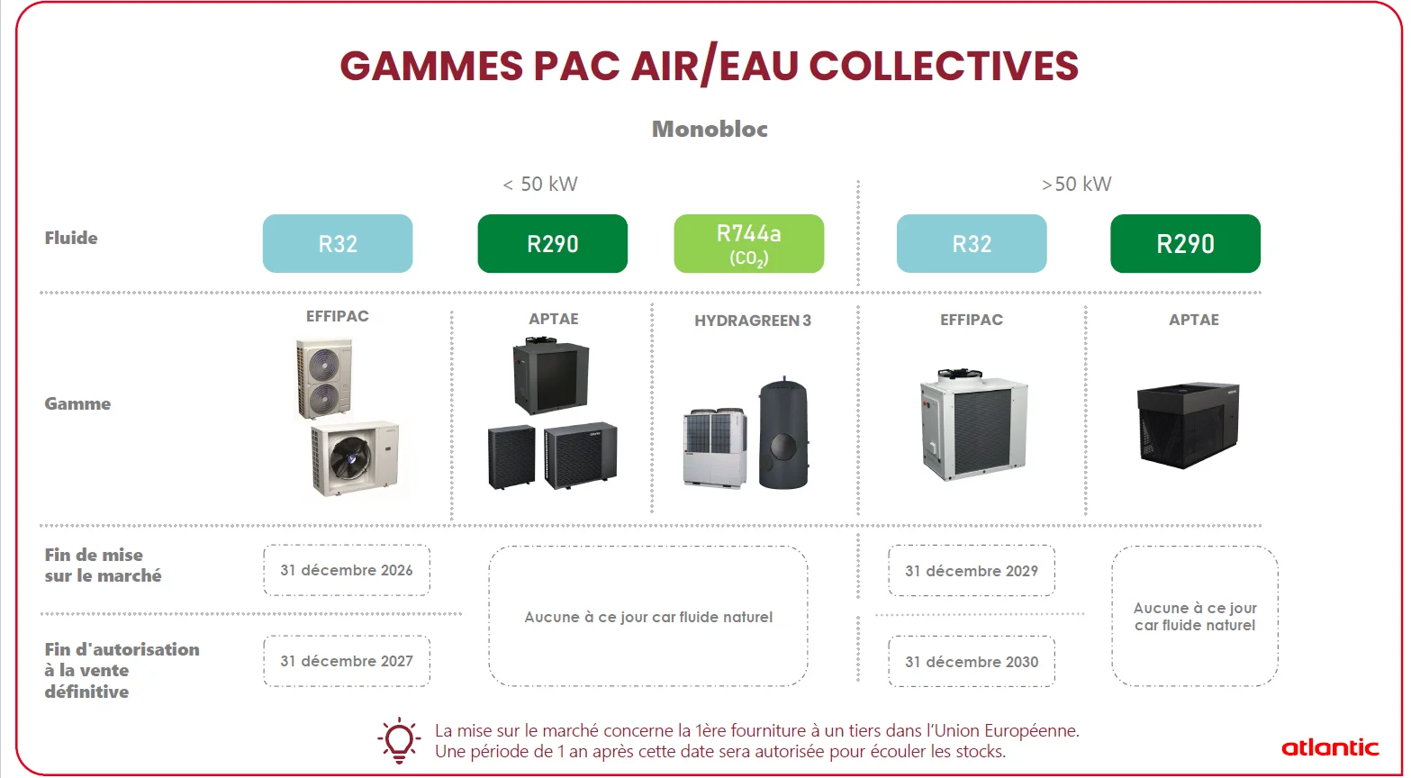 Atlantic Systèmes est déjà prêt, en proposant dès aujourd'hui une alternative innovante : APTAE, la première pompe à chaleur monobloc collective au propane (R290), un fluide exempt de la réglementation F-Gas.