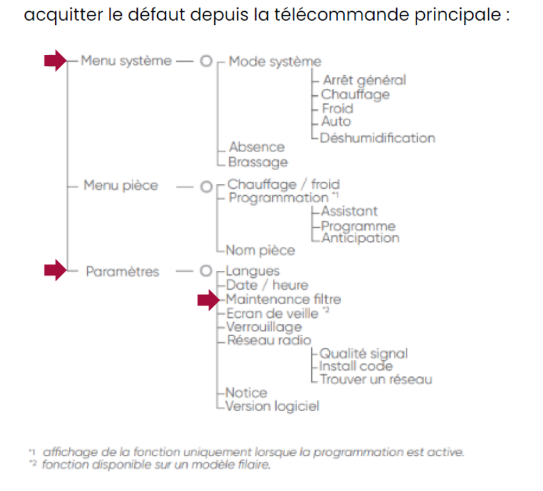 Pour arrêter cette alarme, il suffit d'acquitter l'alarme maintenance, depuis la télécommande principale via le Menu système